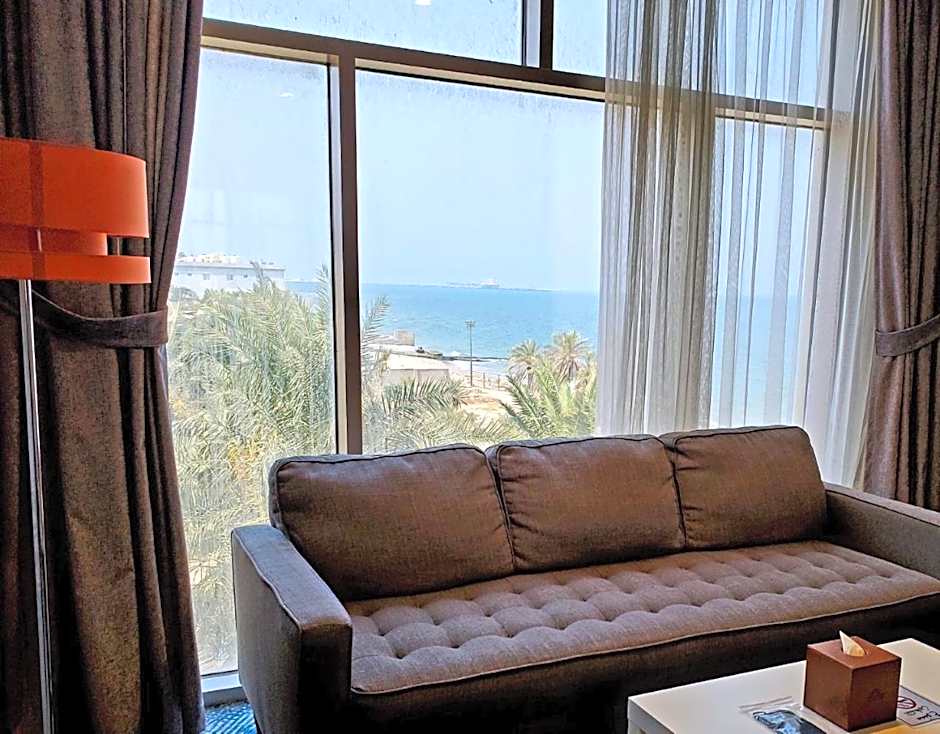 +1 (888) 389-8504Al Kout Beach Hotel is a 4-star seaside retreat in Kuwait, nestled in Mangaf. About 21,3mi from Kuwait City center, this beachfront hotel offers a private beach area and direct access to the shore. Address: Mangaf, Block 5, Building No. 17, Street: Salem Sabah Al Salem Al Sabah. Price starts from $150, and breakfast is offered. The property has 3,466 reviews.